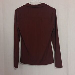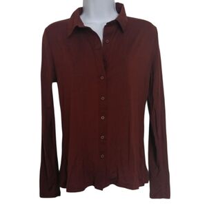 Loft Maroon Lyocell Long Sleeve Collared Button Up Size Small
