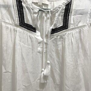 Loft Maternity White Tassel Embroidered Top