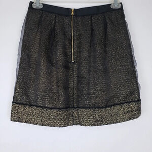 Loft Metallic Gold Black Mesh Overlay Skirt