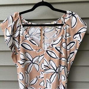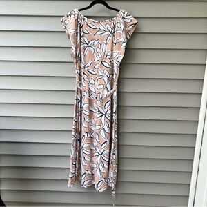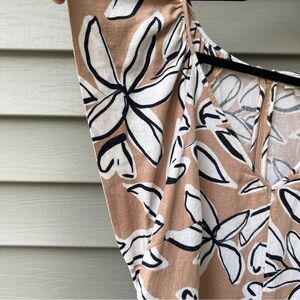 Loft Floral Print Midi Dress Linen Blend Fluttery Sleeves Tan Women's Size 8