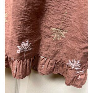 • Ruffled collar, ruffled hem, tie closure