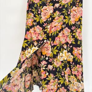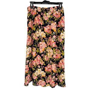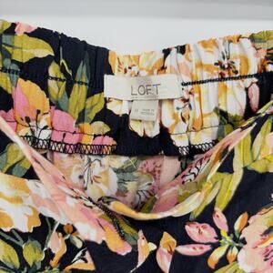 Loft Midi Skirt M Floral Button Front A Line Elastic Back Waist Viscose Cottagecore