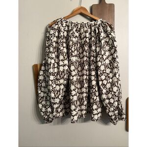 Loft Midnight Espresso Tulip Floral Split Neck Button Sleeves Blouse Size XL NWT