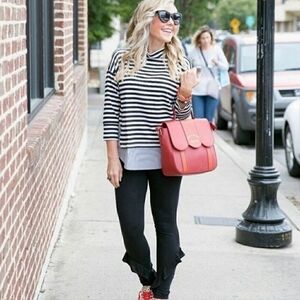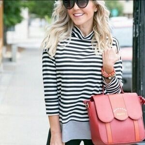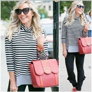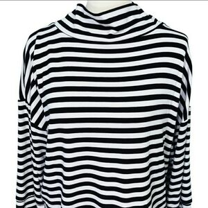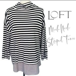 Loft Mock Neck Mixed Stripe Tunic Black White Women's XS Preppy Long Sleeve EUC