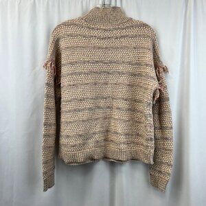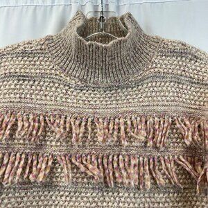 Loft Mock Neck Pink/Multi Knit Sweater Long Sleeve Size Small Fringe
