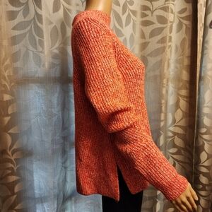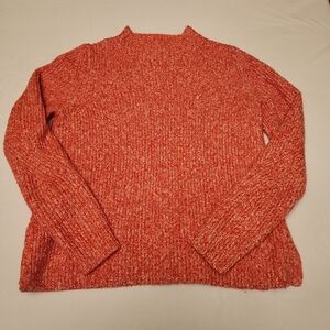 Loft Mock Neck Ribbed Red and White Sweater Size M