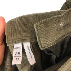 Loft Modern Skinny Green Corduroy Pants Women's 25/0 Zipper Ankle.
