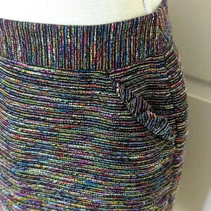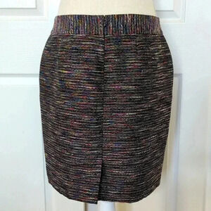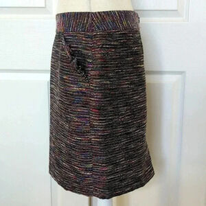 Loft Multi-Color Striped Textured Skirt. Fully Lined. 2 pocket in front with ruffle edges.