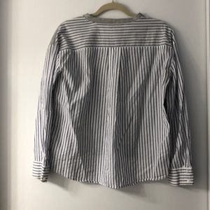 Front side is a gray sweatshirt and sleeves and back are blue and white linen