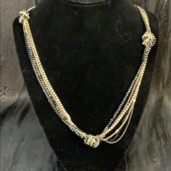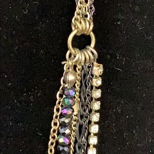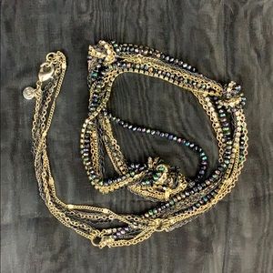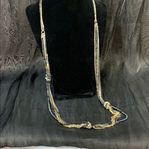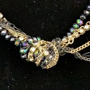 Beautiful multi strand necklace from Loft. Gold chains, black chain mixed and knotted with strands of faceted glass beads and rhinestones. 34”