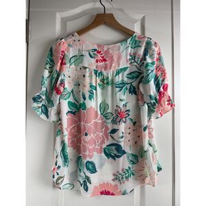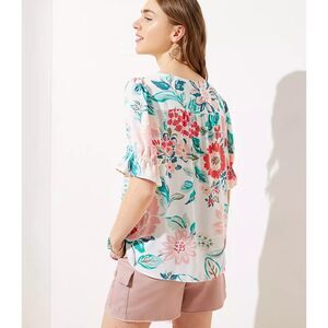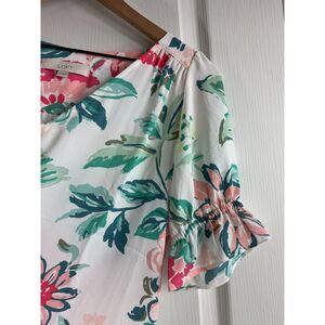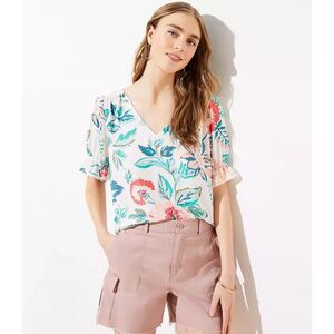 Loft Multicolor Floral Flutter V-Neck Short Sleeve Blouse Polyester Women's XS