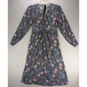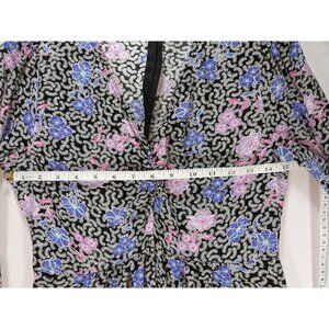 Loft Multicolor Floral Ruched Midi Dress V-Neck Long Sleeves Women's 0 Petite