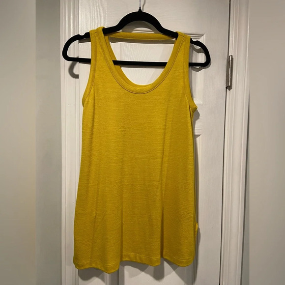 Loft Mustard Yellow Knit Stretch Split Hem Back Strap Tank Top Size XS