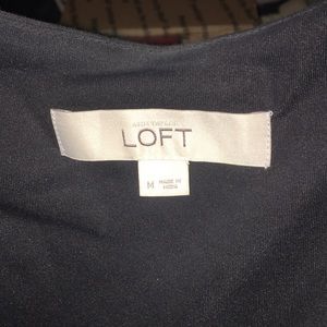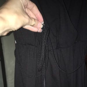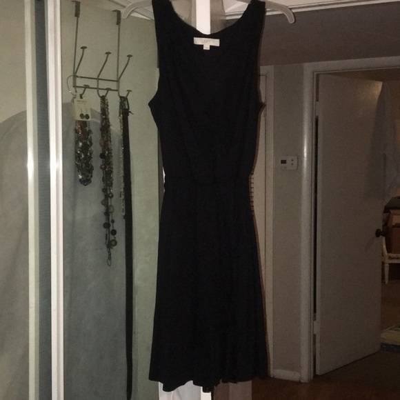 Loft NWOT M black deep v neck dress, elastic waist and a tie belt with cute “ruching” on straps.