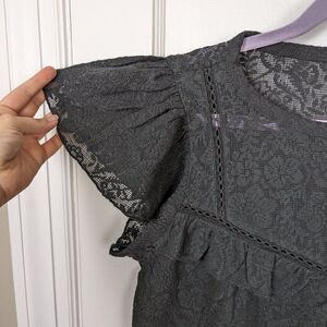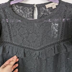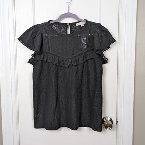Loft | NWT Black Lace Ruffle Short Sleeve Top Size Small