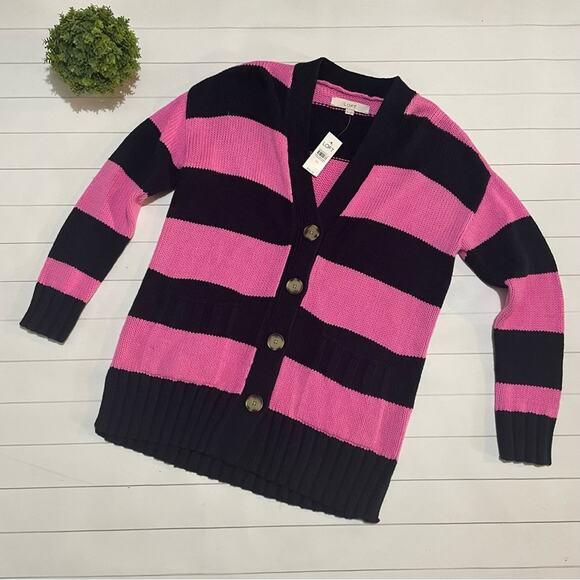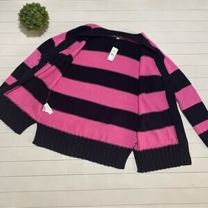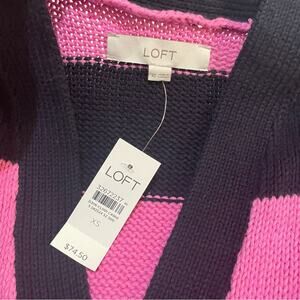 Loft NWT Bold Stripe Pink Blue Knit Cardigan Sweater Women’s Size XS