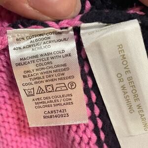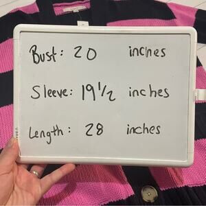 This sweater is new with tags! Bold color ink and navy blue stripes. Knit cardigan sweater with button front. Women’s size extra small. 11.7.23 O