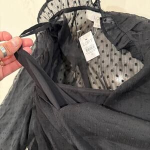 Loft NWT Clip Godet Mini Flare Dress Women’s 8 Black Ruffle Collar V-Neck Chic