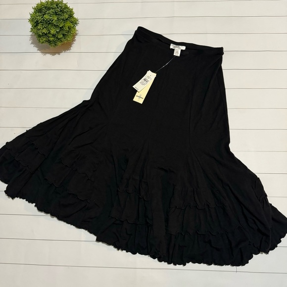 This skirt is new with tags! Soft black stretch jersey knit fabric. Lettuce hem ruffle details. Long modest midi skirt. Women’s size extra small petite. 1.5.24 QQ