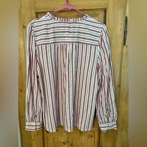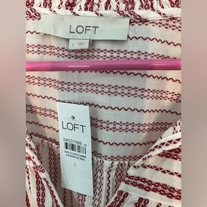 Loft NWT Red & White Striped Blouse Size Large Long Sleeve