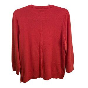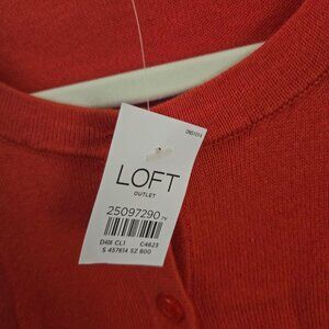 Loft NWT Tomato Red 3/4 Sleeve Crewneck Cotton Cardigan Sweater Size L