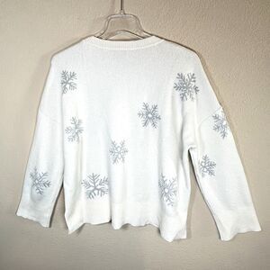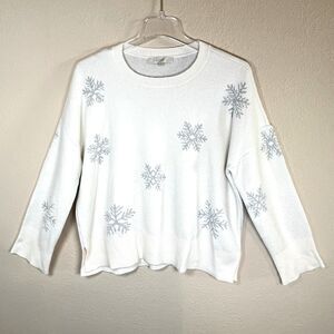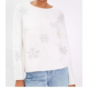 For sale is this women's Loft whisper white sweater, size XL. The pullover sweater features shimmer snowflakes pattern.