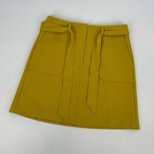 This chic yellow skirt features a stylish bow detail, perfect for any occasion. Has a button closure as well as two clasps and a zipper. Its vibrant color adds a pop to your wardrobe.