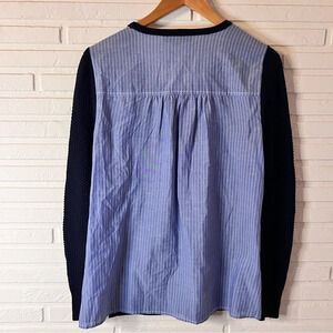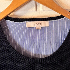 Loft Navy Blue And Striped Mixed Media Cotton Sweater, Women’s Size Extra Small