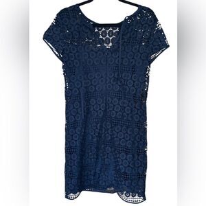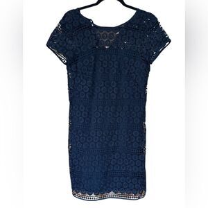 Loft Navy Blue Cap Sleeve Lace Overlay Dress. Size 4.