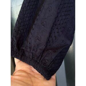 Loft Navy Blue Embroidered Cotton Blouse With Balloon Sleeves S