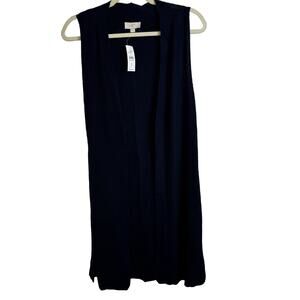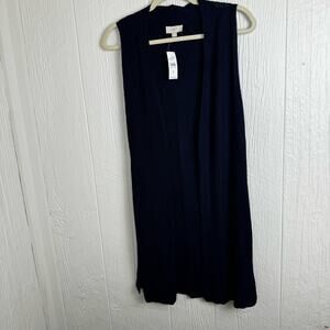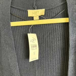 Loft Navy Blue Open Front Cardigan Duster Knit NWT Size Small Minimalist Neutral