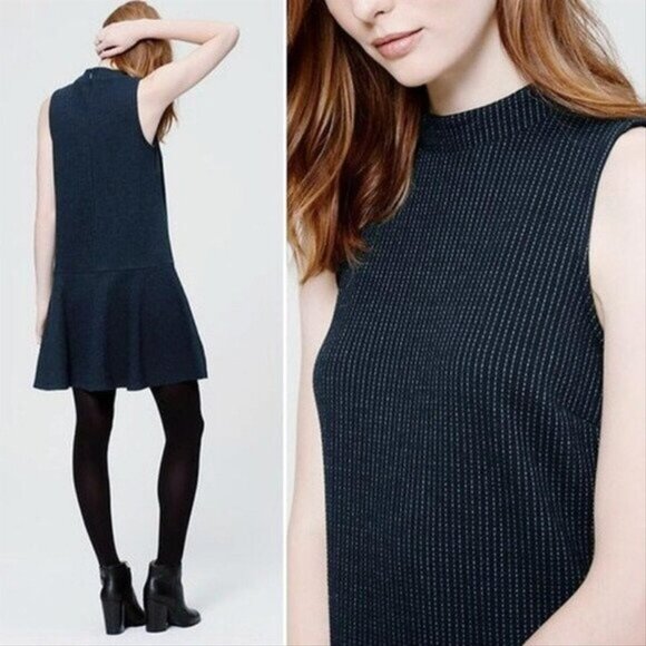 Loft Navy Blue Pinstripe Knit Swing Micro Ultra Mini Shift Sleeveless Dress XS P