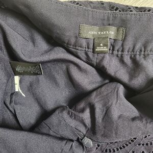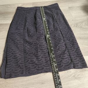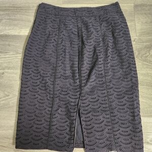 Loft Navy Blue Skirt Size 4 Zip Eyelet Broderie Anglaise Fabric Pencil Lined