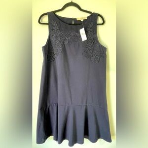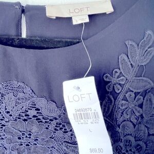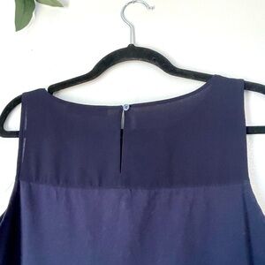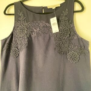Loft Navy Blue Sleeveless Dress Size Large Pullover Floral Lace Buttoned Back