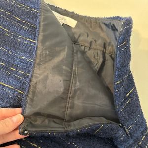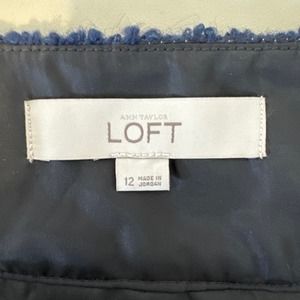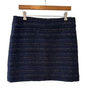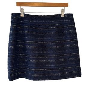 Loft Navy Blue Wool Blend Textured Skirt with Gold Shimmer Detail Size 12