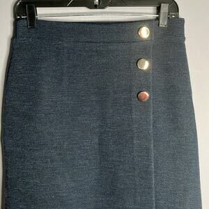 Loft Navy Blue Wrap Skirt Gold Button Detail Size 2