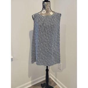 Loft Navy Blue and Ecru Geometric Design Sleeveless Blouse