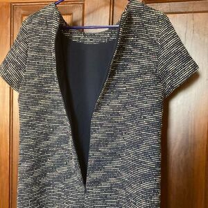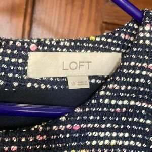 Loft Navy Blue with Pink Yellow White Zip Short Sleeve Tweed Shift Dress Sz 10