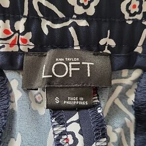 Loft Navy Floral Vine Wide Leg Pull-on Pants Size Small S
