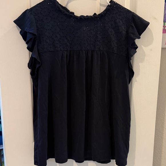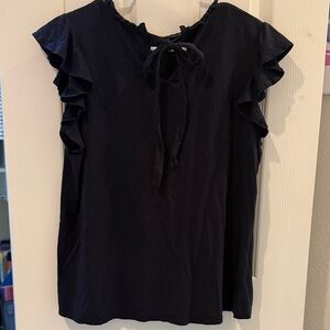 Loft Navy Ruffle Sleeve Top