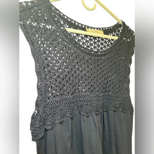Loft Navy Sleeveless w|Crochet Upper cotton top. Size XL.