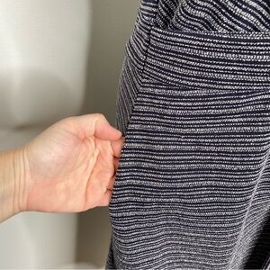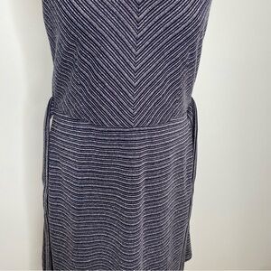 Loft Navy White Striped Textured Tie Waist Pocket Dress