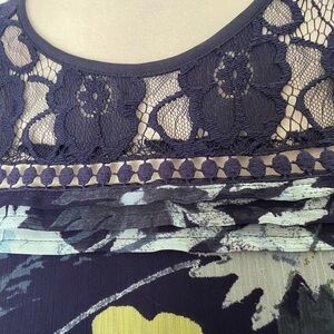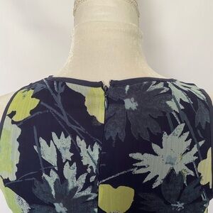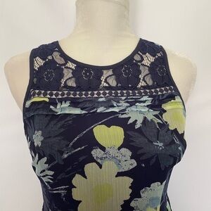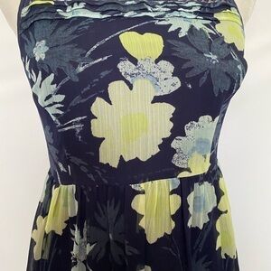 Loft navy and yellow floral dress with zipper in back for closure. It has a lace detail on the neckline and lining. Pre-owned...size 2P...no flaws noted...see photos for care details...032721