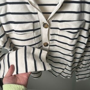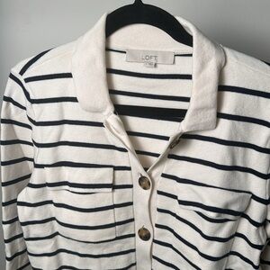 Loft Navy and White Collared Button Down Preppy Sweater Jacket Size Small