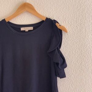 Loft | Navy ruffle short sleeve tee shirt top