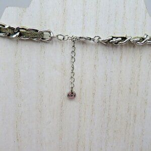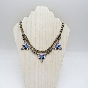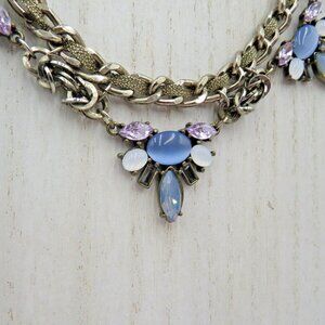 Loft Necklace Silver Tone 18" Chain Purple Rhinestone Blue Beads Statement Bib Preowned