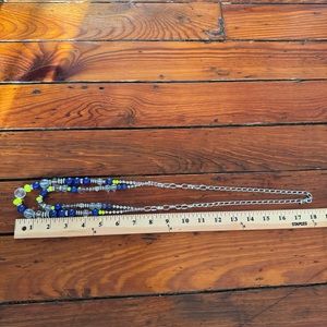 Loft Necklace Yellow Navy & Silver Tone With faceted beads 36” Double Stranded