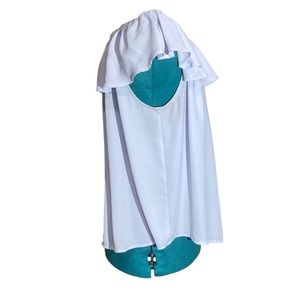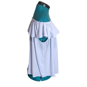 Beautiful flows top in light blue. Can be worn on or off shoulder.