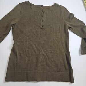 Loft Olive Green Lightweight 3/4 Sleeve Sweater Button Closure Medium Wool Blend