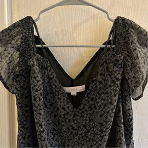 Loft On The Shoulder Or Off Flowy Black Camy Lined Blouse Size small Petite EUC